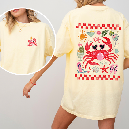 Add a pop of playful personality to your wardrobe with our Bubblegum Crab design! Featuring a fun, eye-catching crab blowing bubblegum, this piece is perfect for anyone who loves quirky, beachy vibes with a bold twist. Whether you're heading to the coast, lounging at home, or just want to stand out, this design brings the perfect mix of cute and cool.