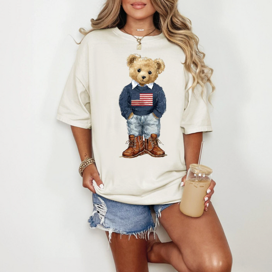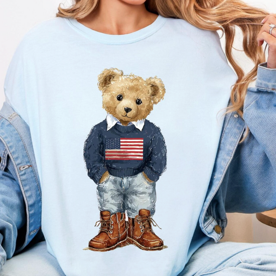 USA Patriotic Teddy Sweatshirt or T-Shirt, DTG Printed