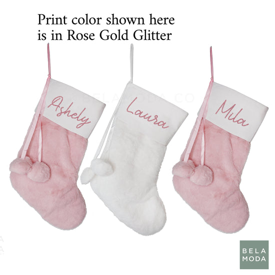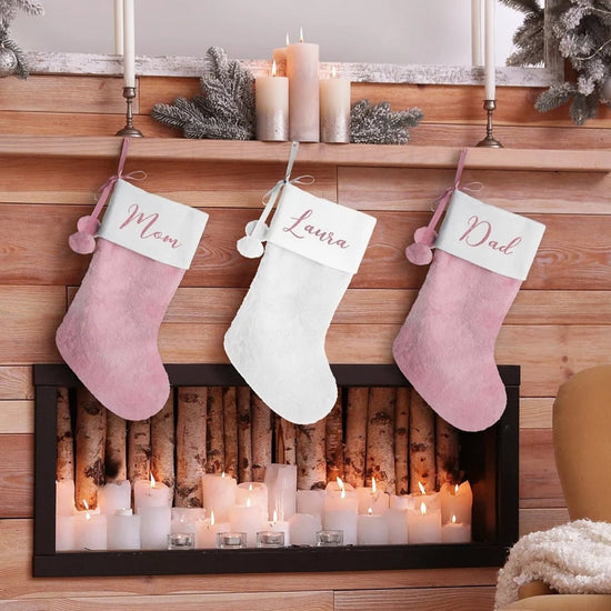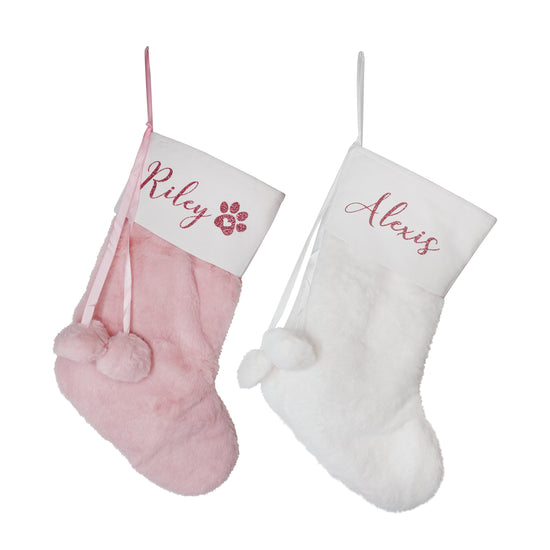 Custom Pink/White Pom Pom Christmas Stockings